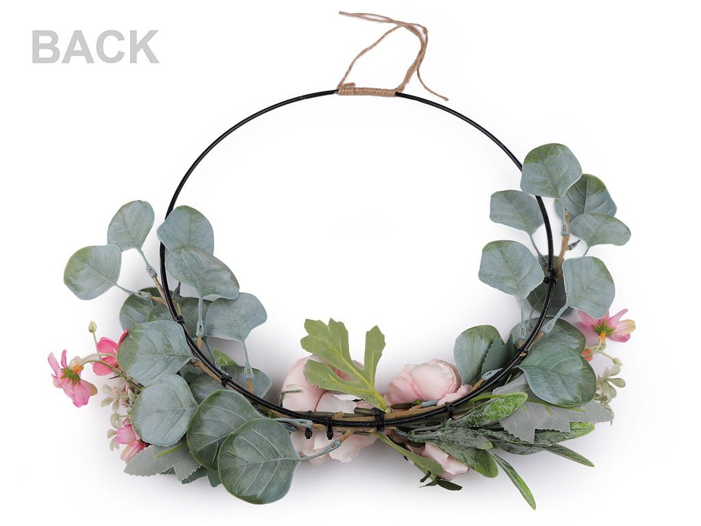 Závěsná dekorace s květy působí romanticky a bohémsky. Dolní část kruhu zdobí umělé větvičky a květy, v horní části je poutko z jutového provázku.…