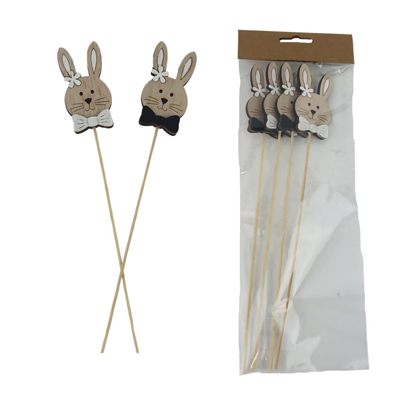 Sada dekoračních zápichů zajíc. Sada obsahuje 4 zápichy. Zápich má rozměry : 4 x 0,8 cm, výšku 8 cm, celková délka zápichu 31 cm.Rozměr: 4.2×0.8×31