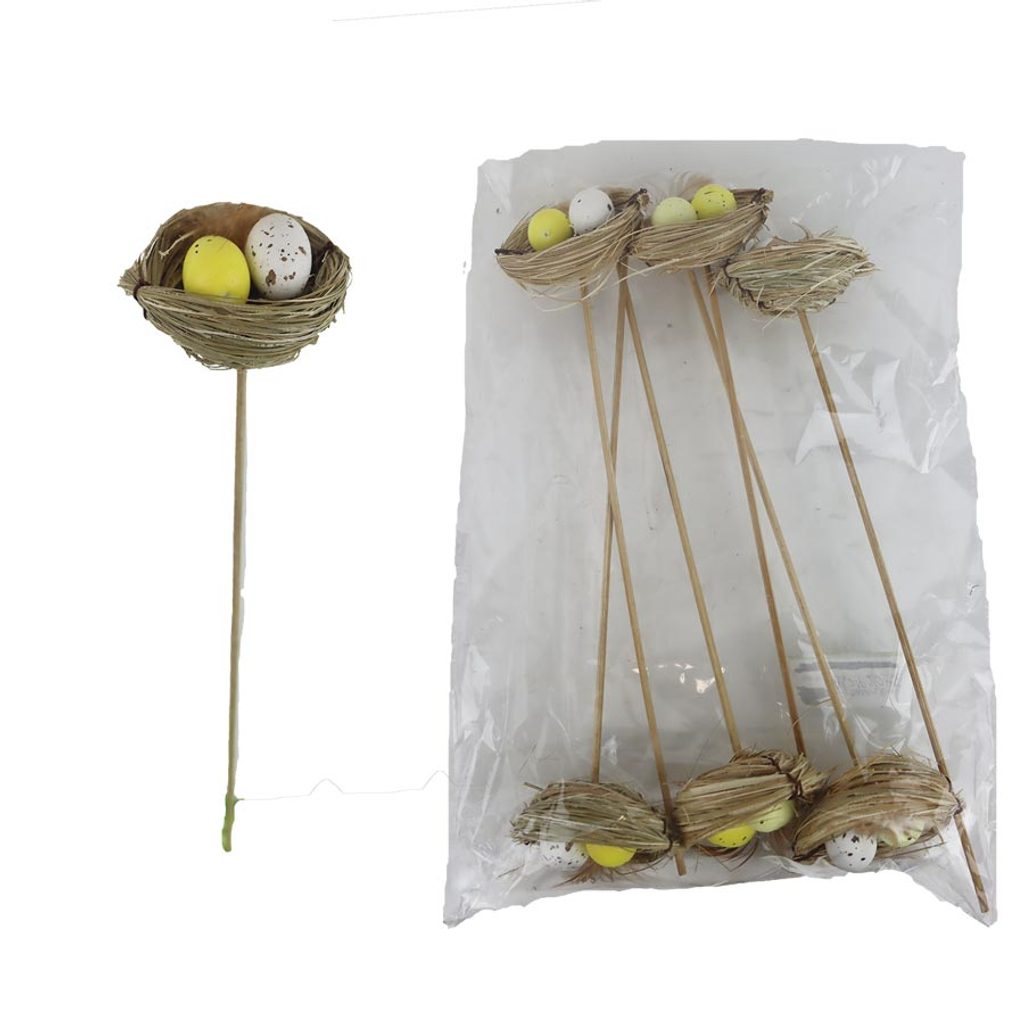 Sada dekoračních zápichů hnízdo s vajíčky. Sada obsahuje 6 zápichů. Celková délka zápichu 26 cmRozměr: dia 6,5 x 2,5 / 26 cm
