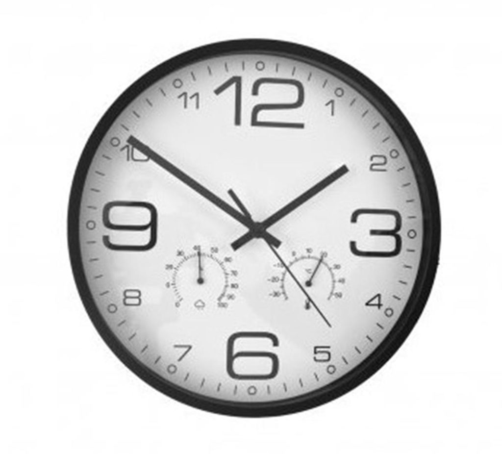Hodiny nástěnné kov tepl./vlhk. černé pr. 33 cm - dia 33 cm