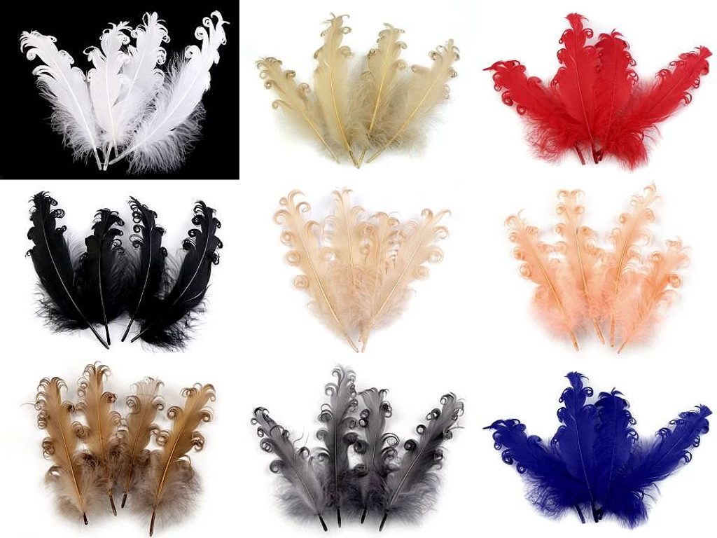 Husí peří kudrnaté délka 12-18 cm sada 4 kusy