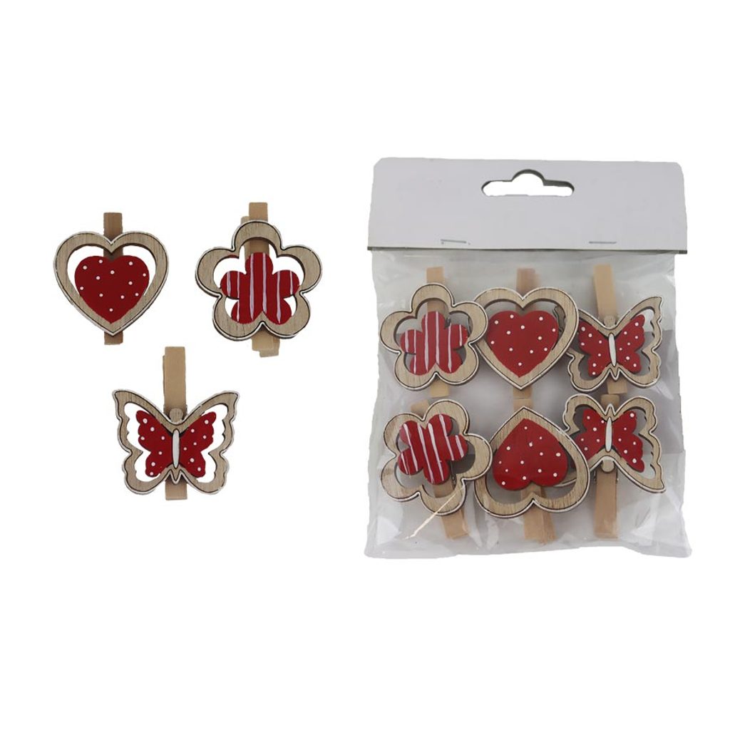 Klipy srdce, 6 ks D5923-01 - 3,5 x 4 x 1 cm