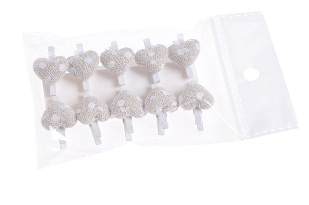 Kolíček srdíčko krajka 10 ks - béžová světlá