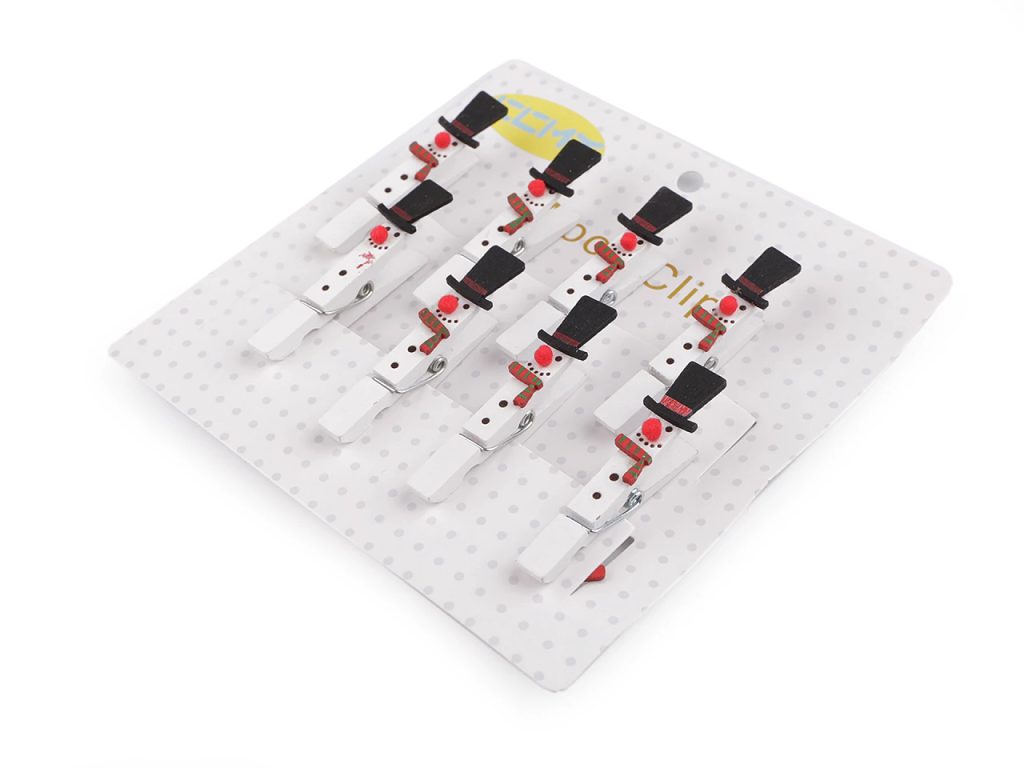 Vánoční dřevěný kolíček sněhulák, sob 8 kusů