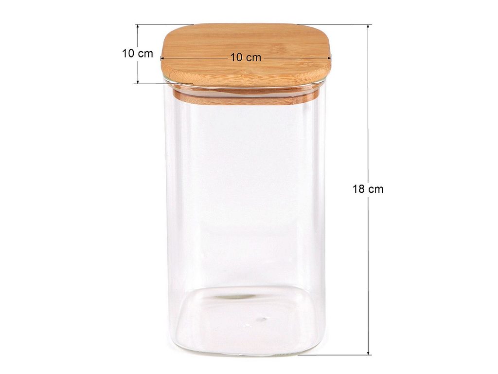 Skleněná dóza s bambusovým víkem je elegantní a funkční doplněk do každé domácnosti. Hranatý tvar dózy je praktický, lépe se uskladňuje, je vhodná pro různé domácí použití. Díky průhlednému sklu máte vždy přehled o obsahu a množství. Bambusové víko s těsněním je přírodní a ekologické.Borosilikátové sklo je vysoce odolný a zdravotně nezávadný materiál.