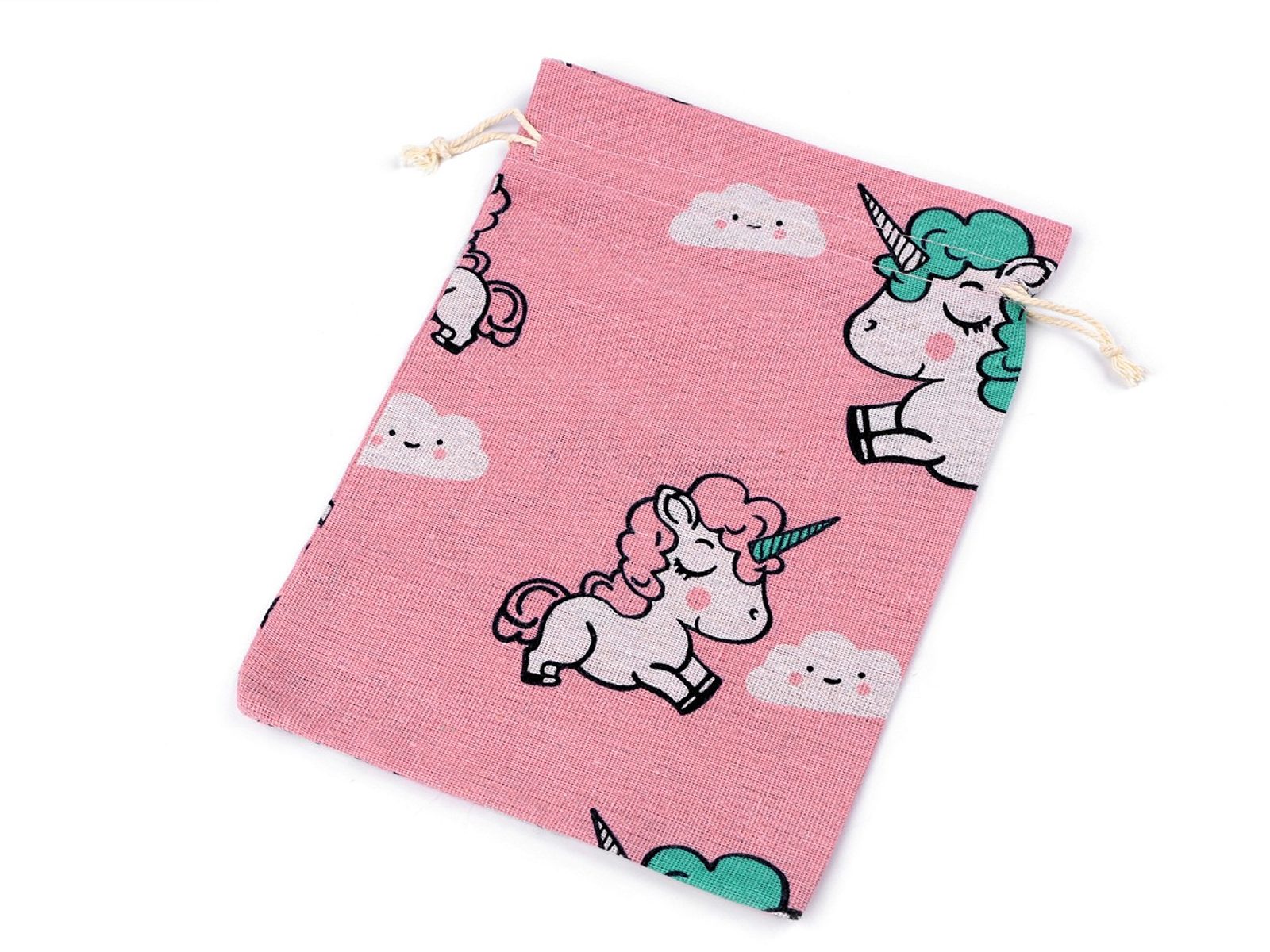 Bavlněný pytlík zdobí barevný potisk jednorožců. Snadno se uzavírá pomocí dvou stahovacích šňůrek.Pytlík využijete k balení menších dárků. Dívky jej pak rády používají na uložení svých drahocenných pokladů. Můžete do něj také vložit sušené květy, například levanduli, která bude skrz pytlík krásně vonět.