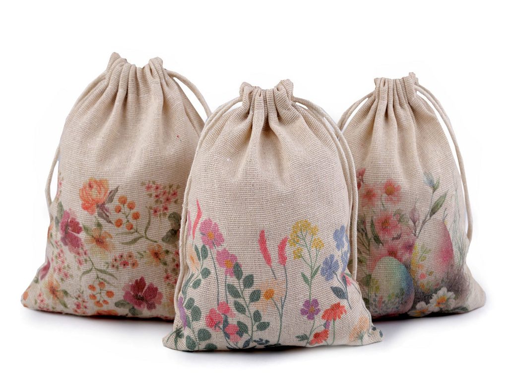 Dárkový pytlík jarní / velikonoční 13x18 cm lněný