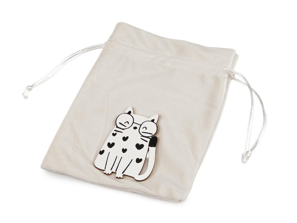 Dárkový pytlík s dřevěnou kočkou 14,5x19,5 cm sametový