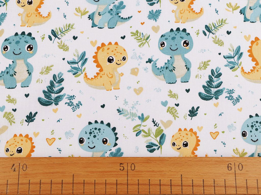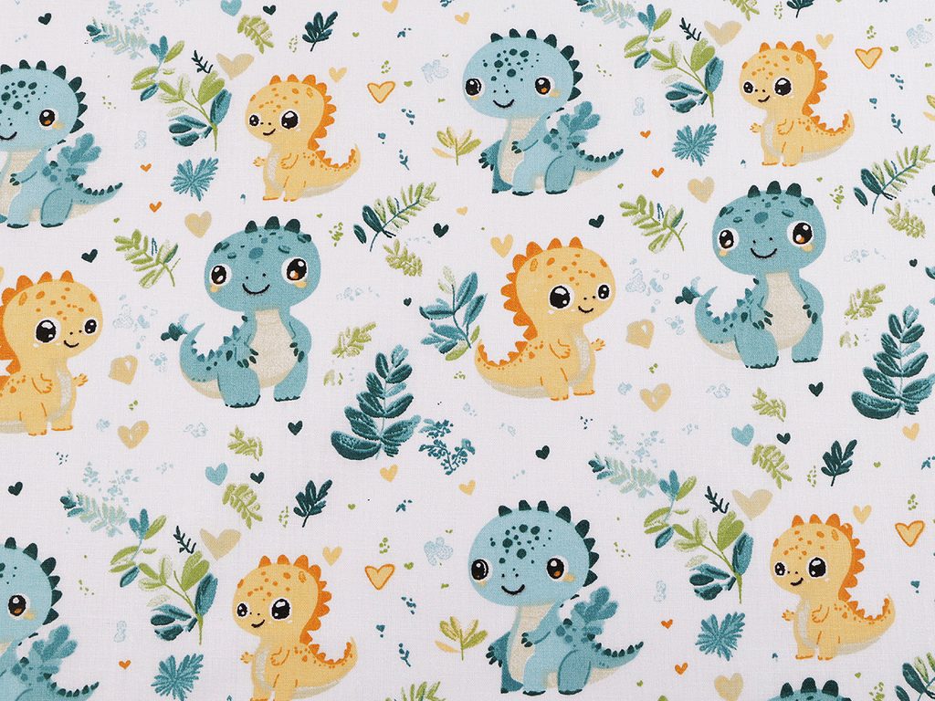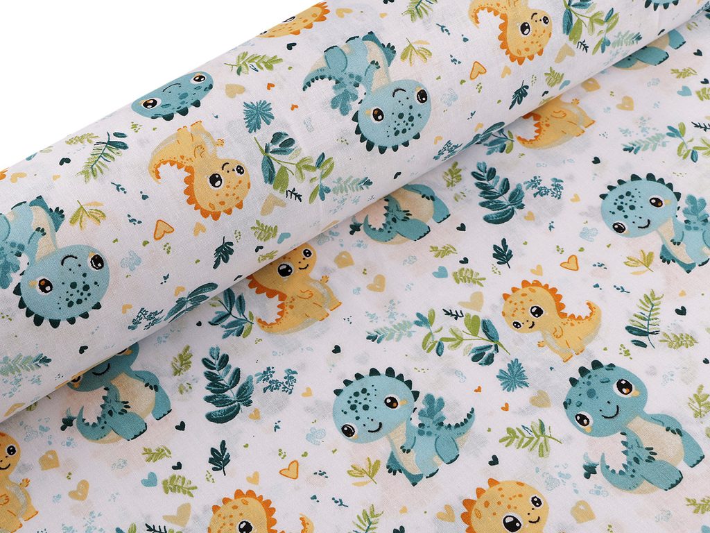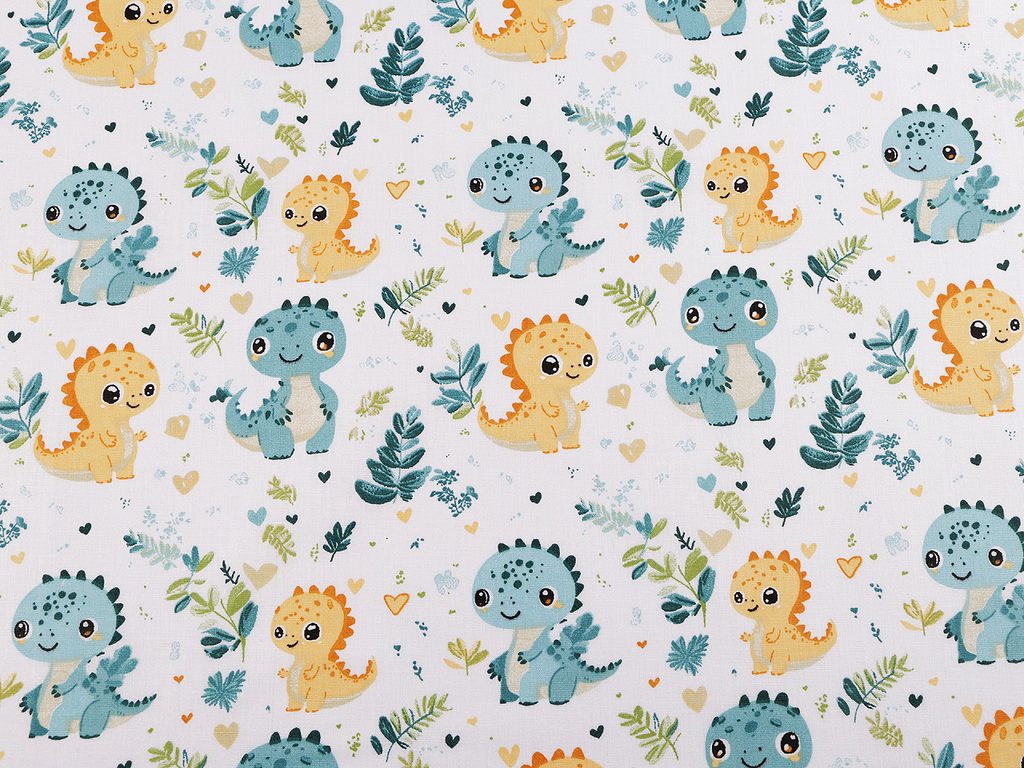 Malí dinosauři na bavlněném plátně působí roztomile a okouzlí všechny děti. Můžete z něj ušít kapsáře, tašky, pytlíky, povlečení či závěsy, které promění dětský pokoj ve fantazijní svět plný prehistorických tvorů.- Šíře:: 160 cm