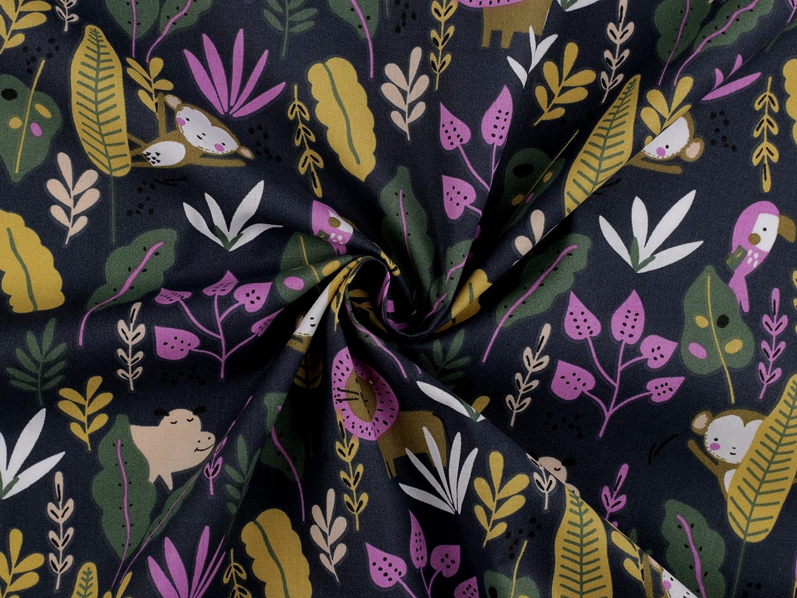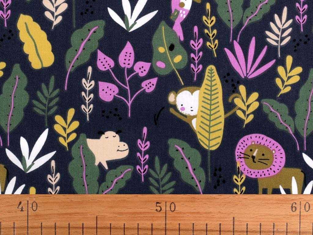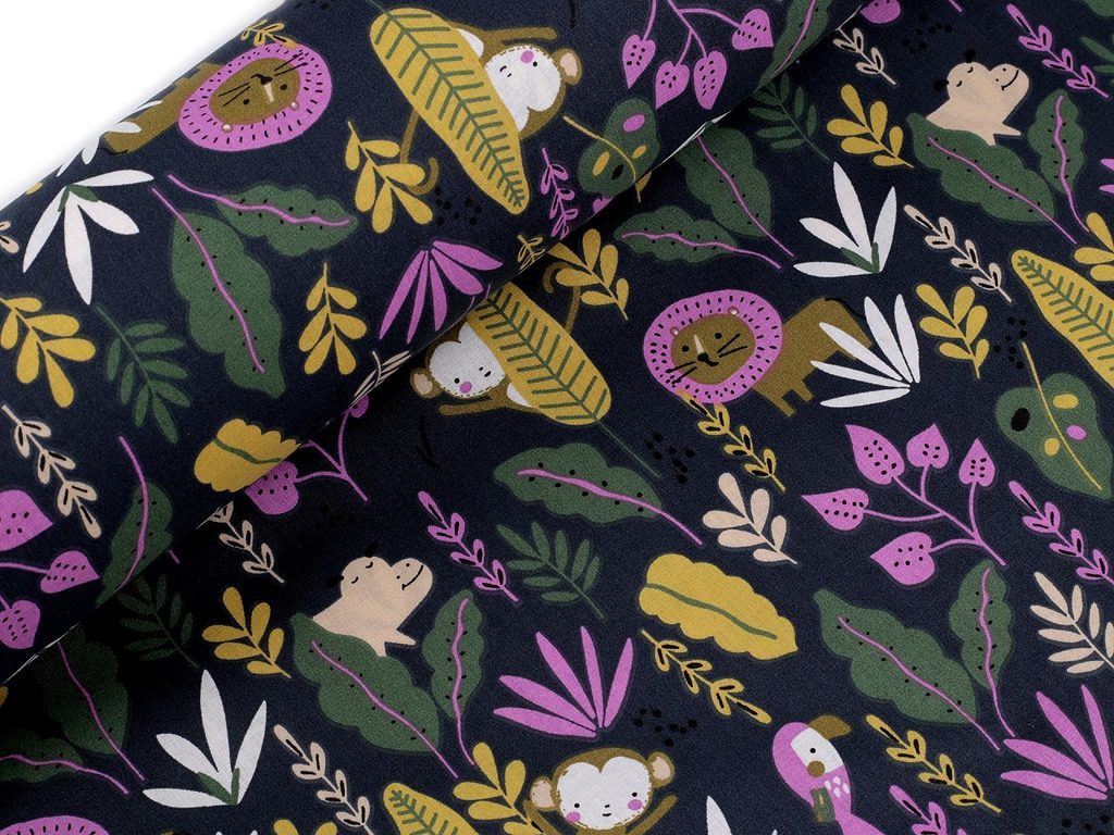 Bavlněnou látku s motivem zvířátek v džungli využijete na šití polštářů, povlečení, závěsů, pytlíků, tašek, mantinelů do postýlek i hnízd pro děti.- Šíře:: 150 cm