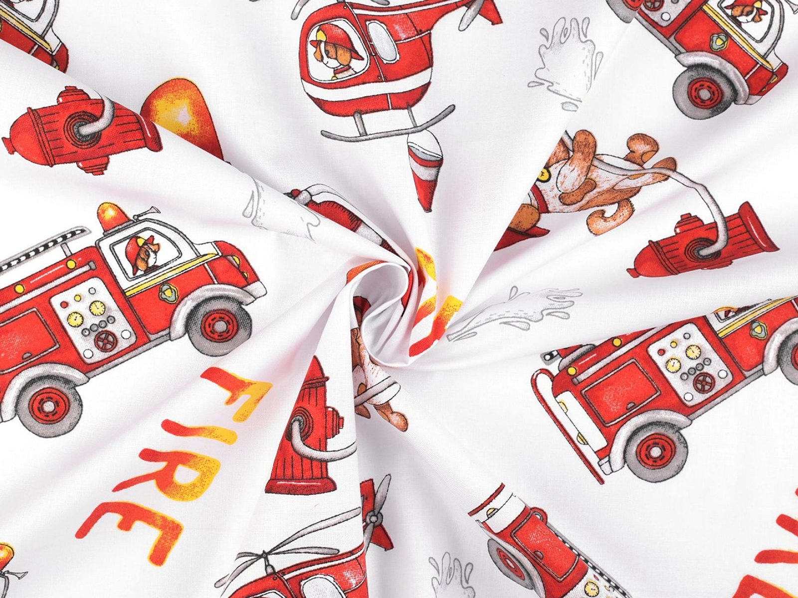 Bavlněnou látku zdobí potisk s pejsky - hasiči. Děti si ji zamilují na povlečení, pytlících, mantinelech do postýlek, kapsářích, taškách apod.
