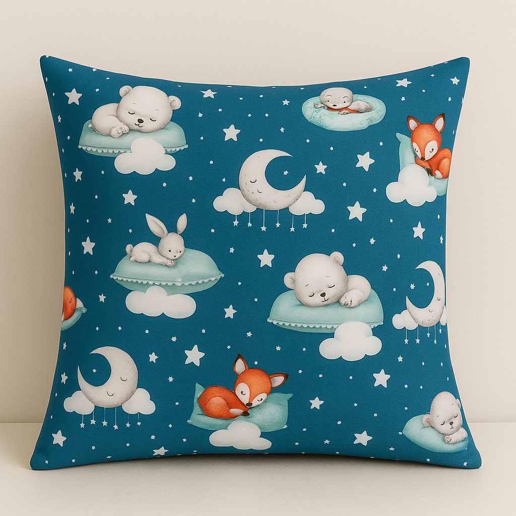 Bavlněná látka je vhodná na šití polštářů, dětského povlečení, závěsů, pytlíků, tašek nebo kapsářů. Zdobí ji obrázky spících zvířátek.- Materiál: bavlna 100%