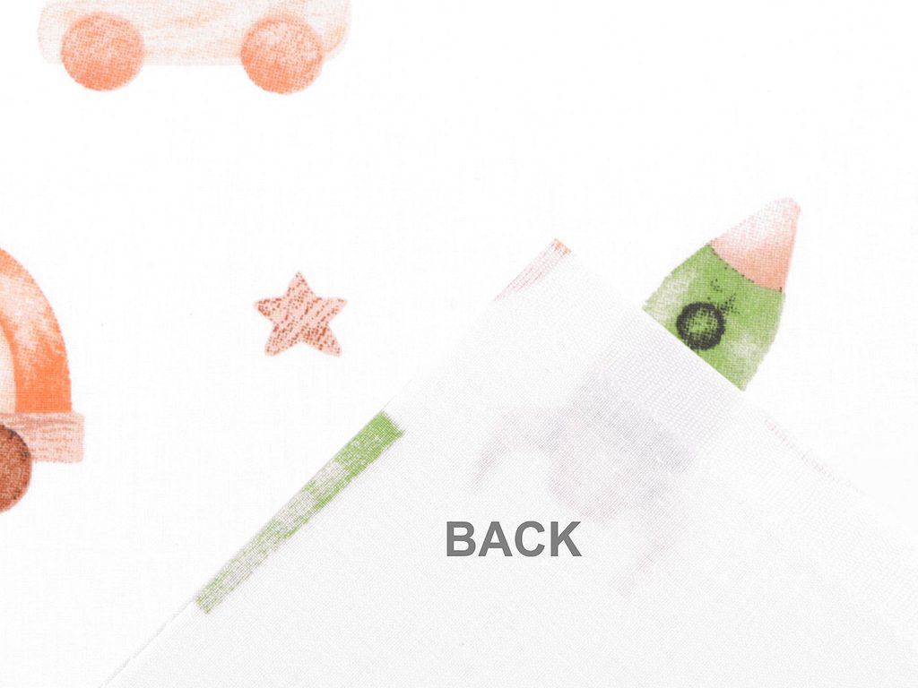 Bavlněné plátno zaujme děti obrázky vláčků, autíček a raket. Můžete z něj ušít polštáře, povlečení do postýlek, závěsy, pytlíky, tašky, kapsáře apod.