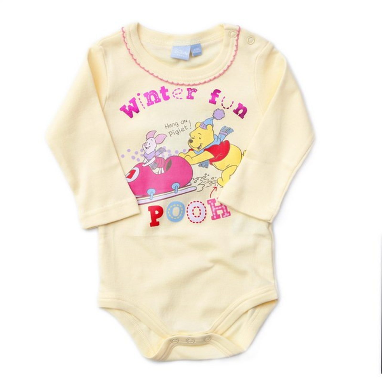 Kojenecké body Disney s potiskem medvídka Pů a jeho přátel. Propínání na cvoky. Materiál: 100% cotton. Délka bodyčka velikost: 50-56 …35 cm; 62-68 cm…40 cm, 74-80 cm…42 cm; 86 cm… 47 cm