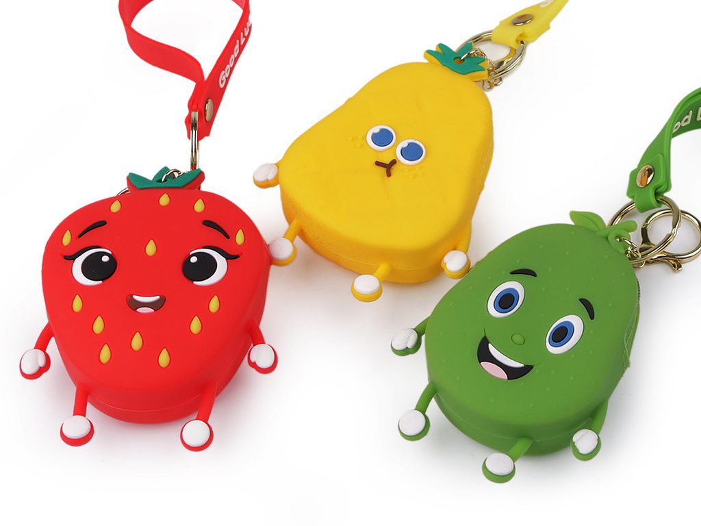 Malá silikonová peněženka ve tvaru ovoce s poutkem a karabinou se dá využívat i jako klíčenka. Zavírá se na zip. Na přední straně má motiv obličeje, na zadní straně najdete antistresové bublinky, se kterými je zábava při dlouhé chvíli.