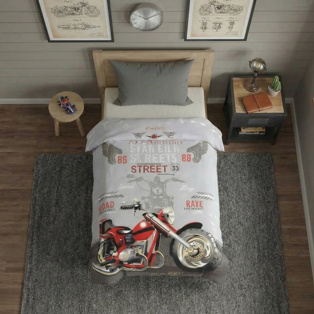 Když povlečení příjemné, tak jedině bavlněné, když povlečení pro teenagery a mladé, tak povlečení moderní.Povlečení Street King s motivem motorky a tematickými nápisy je ideální pro milovníky rychlých strojů. Jeho design dodá každému pokoji drsný a stylový vzhled.
