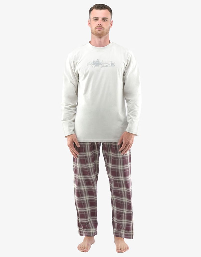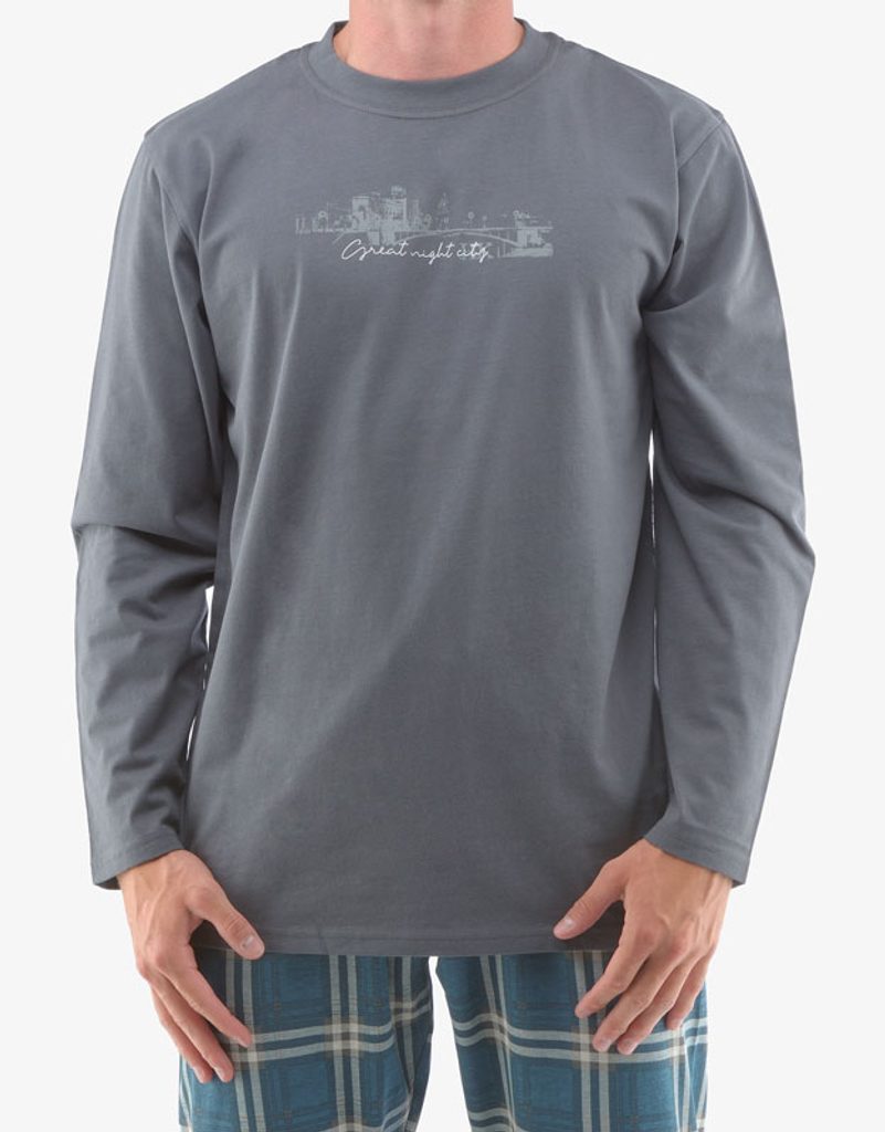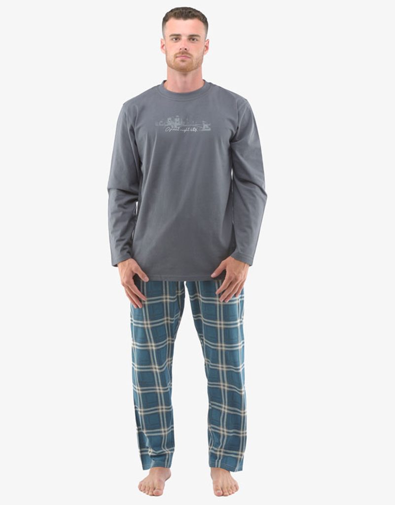pyžamo dlouhé pánské, šité, s potiskem značky GINA, kód 79133. Složení: 100% BavlnaZákladem kvalitního spánku je vaše pohodlí, ke kterému vám pomůže i pohodlné noční prádlo. Triko s dlouhým rukávem má na hrudi potisk a na dlouhé kalhoty jsme zvolili jednoduchý kárový vzor. Bavlněný úplet je ideální volbou materiálu pro noční prádlo a potěší hlavně příznivce přírodních materiálů. Budete se v něm cítit doslova jako v bavlnce.. Kolekce: Pyžama 2022