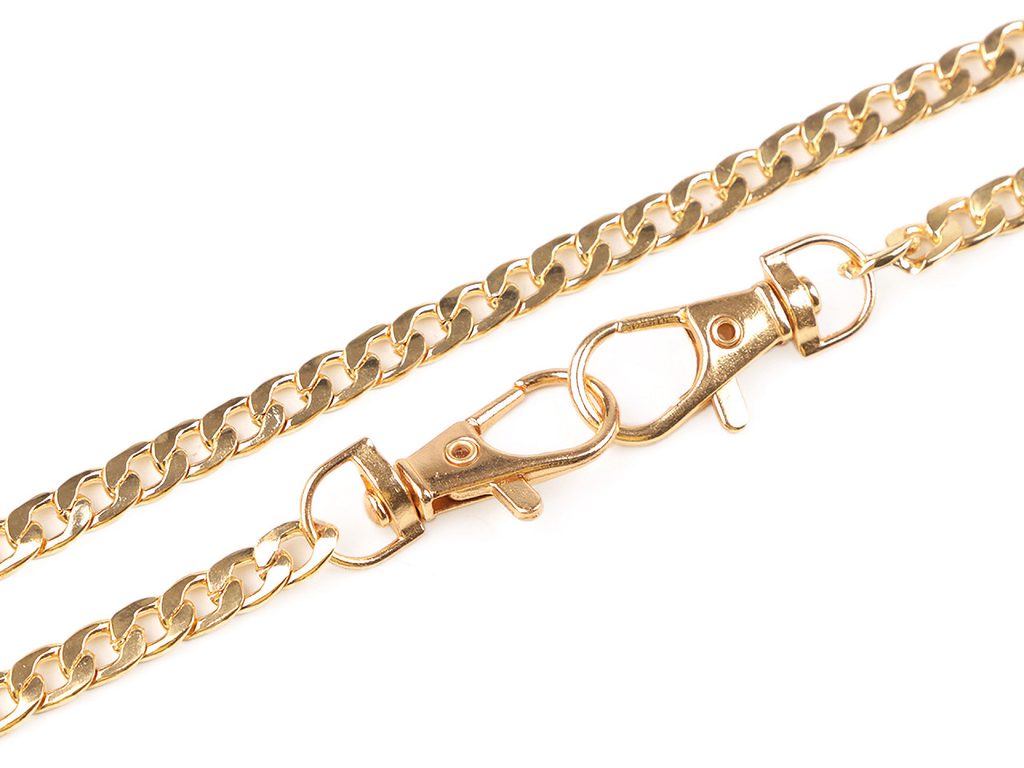 Plochý řetízek využijete na tašky a kabelky. Na obou jeho koncích najdete připevněné karabinky.Hmotnost 1 ks řetízku je cca 84 g.