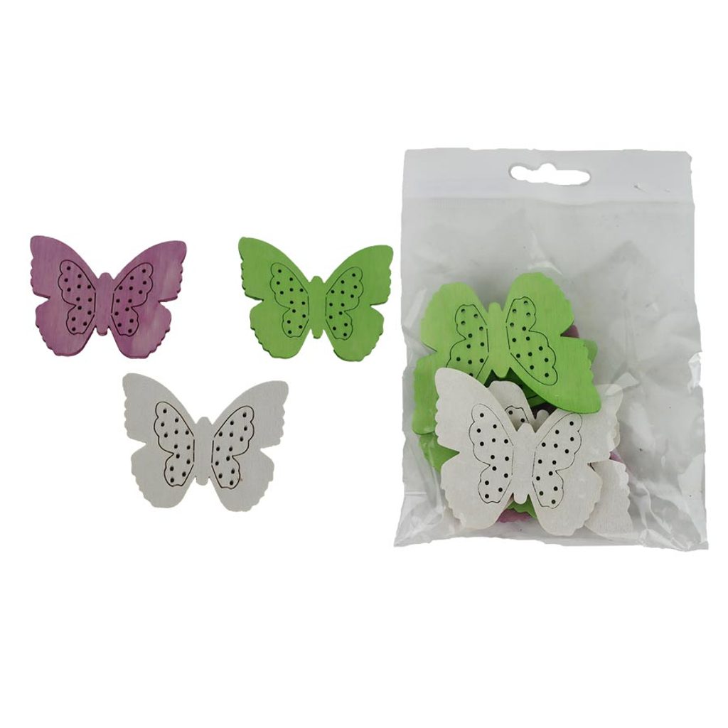 Sada dekoračních motýlků. Sada obsahuje 6 motýlků.Rozměr: 6 cm