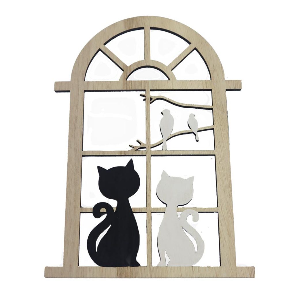Dekorace okno s kočkami.Rozměr: 16,5 × 23,5 × 0,5 cm