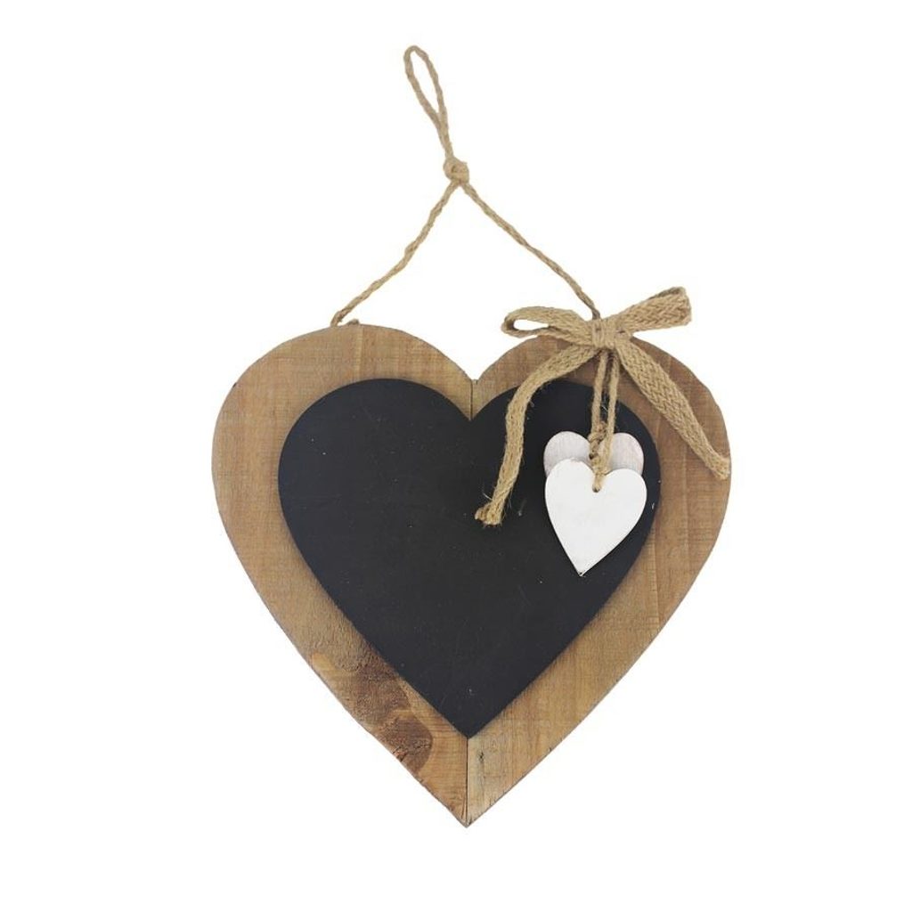 Závěsná deska na psaní ve tvaru srdce. Rozměry : 36 x 36 cm, tloušťka 2,5 cm. Barva : kombinace hnědá s černou. Materiál na bázi dřeva.Podobné produkty z kategorie DŘEVĚNÉ DEKORACE ►