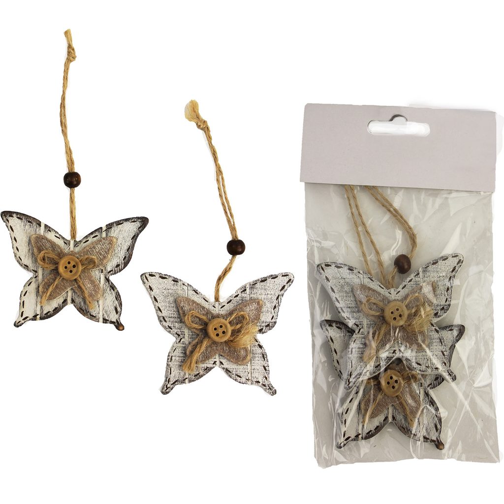 Sada dvou motýlků k zavěšení. Rozměry : 7,5 x 1 cm, výška 6 cm. Materiál : dřevo.- Rozměr: 7,5 x 1 x 6 cm