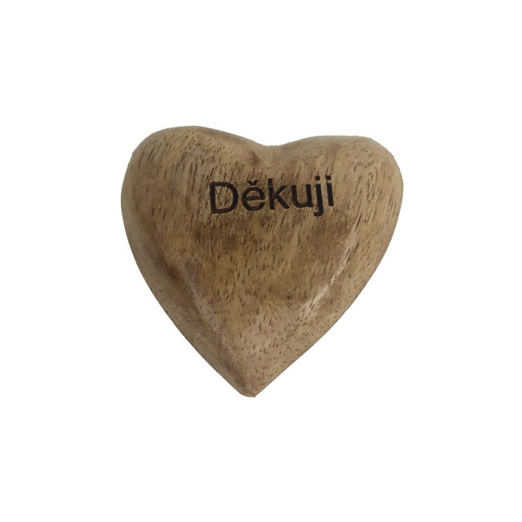 Dekorační dřevěné srdíčko s nápisem - DĚKUJI. Rozměry : 7 x 7 cm, výška 3 cm. Barva : hnědá. Materiál : dřevo.Rozměr: 7 × 7 × 3 cm