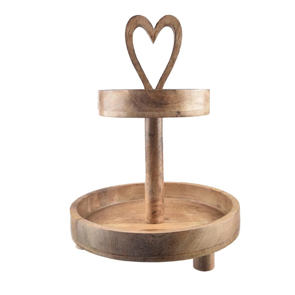 Stojan mango srdce, 2 patra. Rozměry : průměr spodní části 30 cm, výška 42 cm. Barva : hnědá. Materiál : dřevo.Rozměr: 30x30x42 cm
