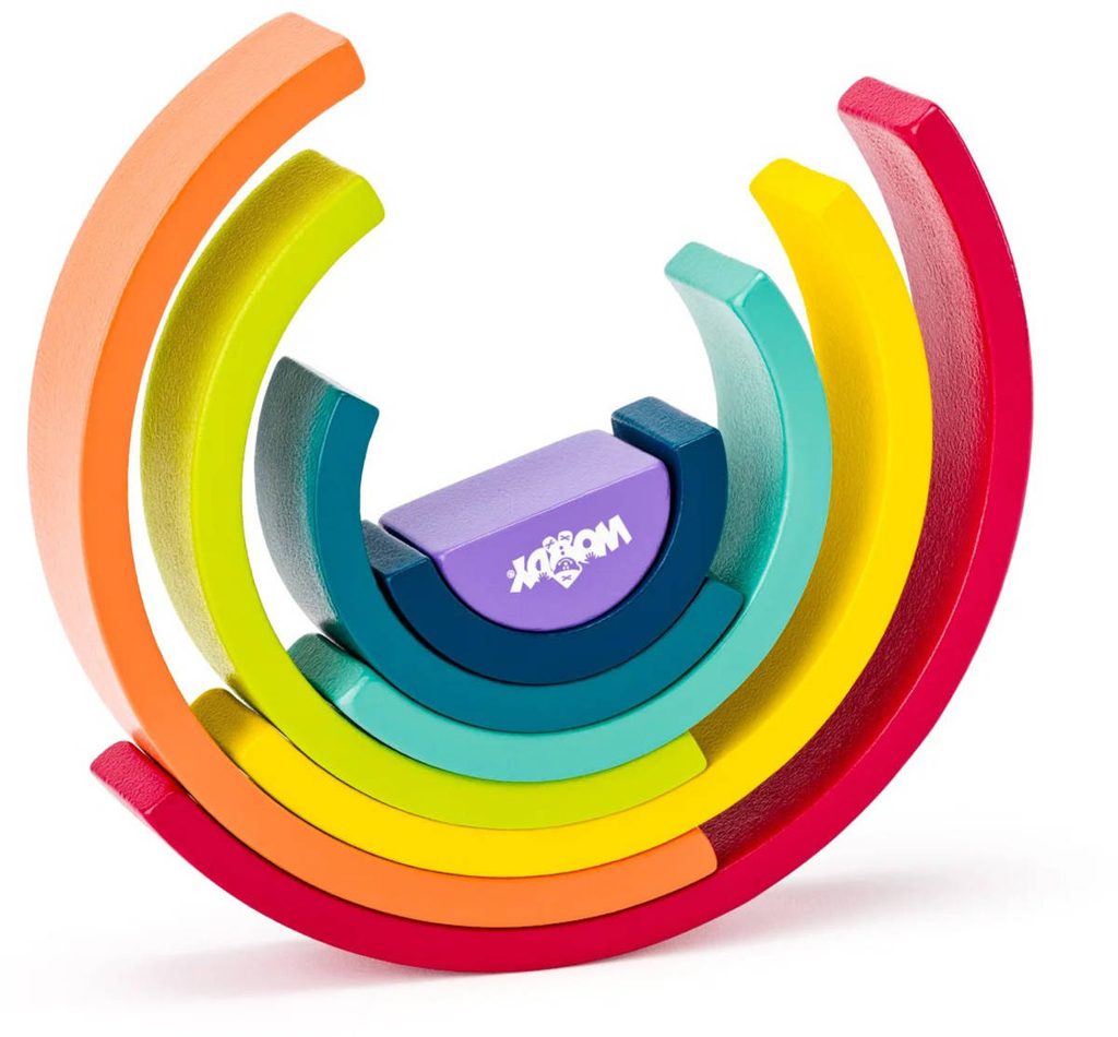 Skládací dřevěná pyramida s navlékacímí kroužky ze dřeva a Káča v jednom. Různobarevné dřevěné kroužky se navlékají na tyčku od nějvětšího k nejmenšímu. Úkolem této hračky je rozvoj dětské motoriky. Navíc lze roztočit jako Káča. Hračka vhdoná pro nejmenší děti, pro miminko.