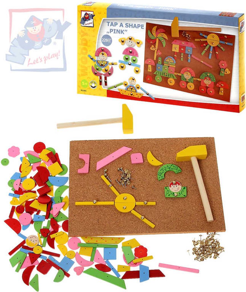Dřevěná zatloukací hra rozvíjející manuální zručnosti dítěte. Dítě si může pomocí přiložených tvarů vymodelovat jakýkoli obrázek, všechny tvary musí spojit s deskou pomocí přibíjecích hřebíčků s kulatou hlavou. Demontáž je velmi snadná.