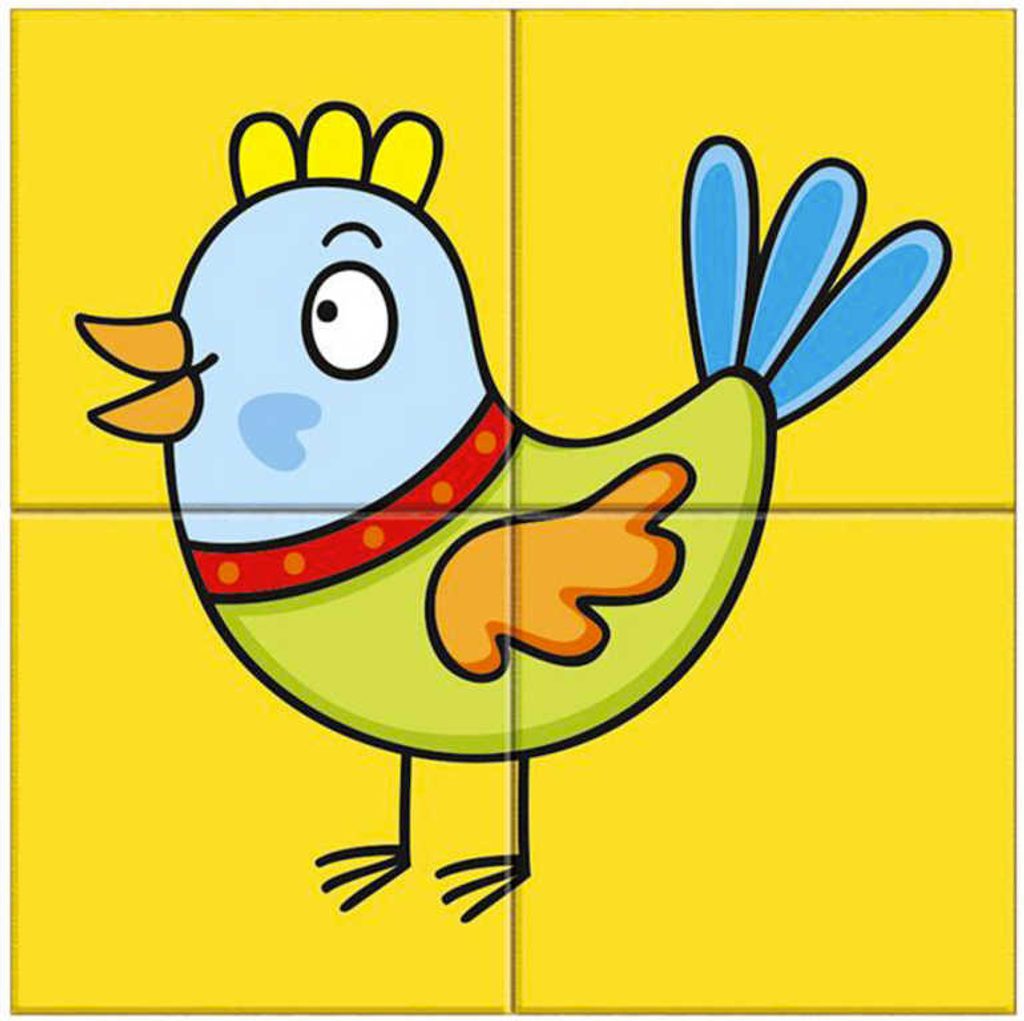 Klasické obrázkové kostky v sadě čytř kusů, nechají dětem složit barevné obrázky s dětskými motivy.