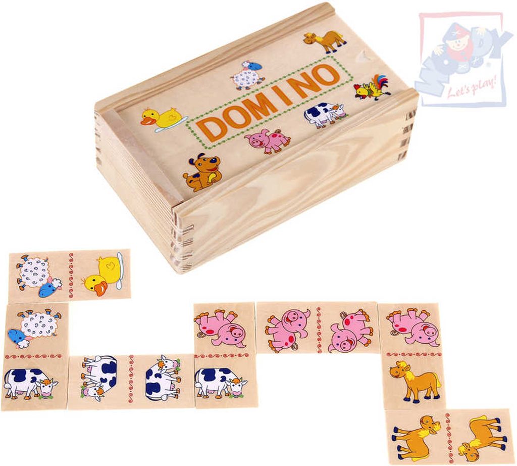 Malé dřevěné domino s obrázky zvířat. Jeho skládáním si děti cvičí zábavnou formou motorické schopnosti a učí se soustředění.