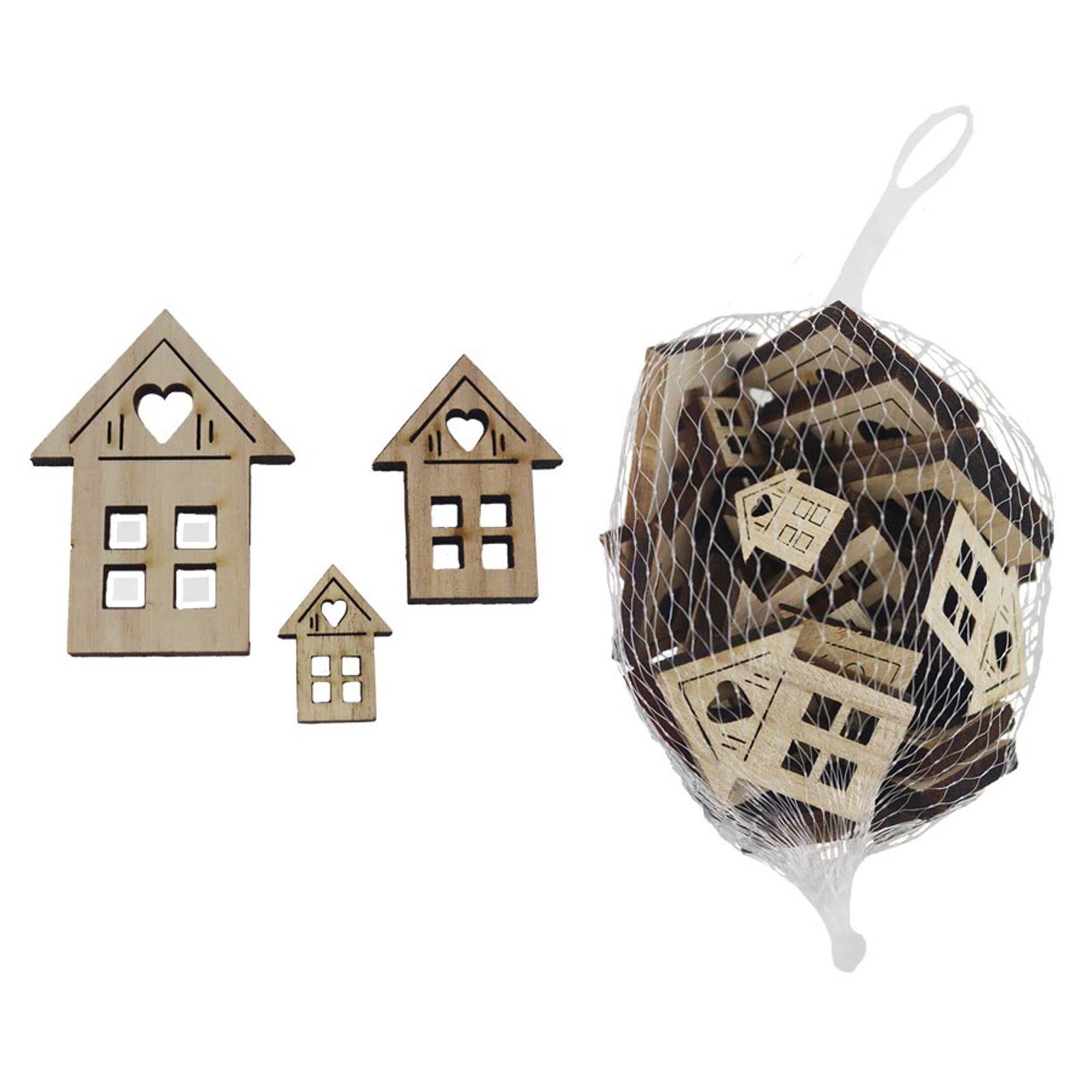 Sada dekoračních domečků. Sada obsahuje 30 domečků o třech velikostech. Rozměry : 2,3 - 5,5 x 3 - 7 cm, tloušťka 0,5 cm. Barva : přírodní. Materiál na bázi dřeva.
