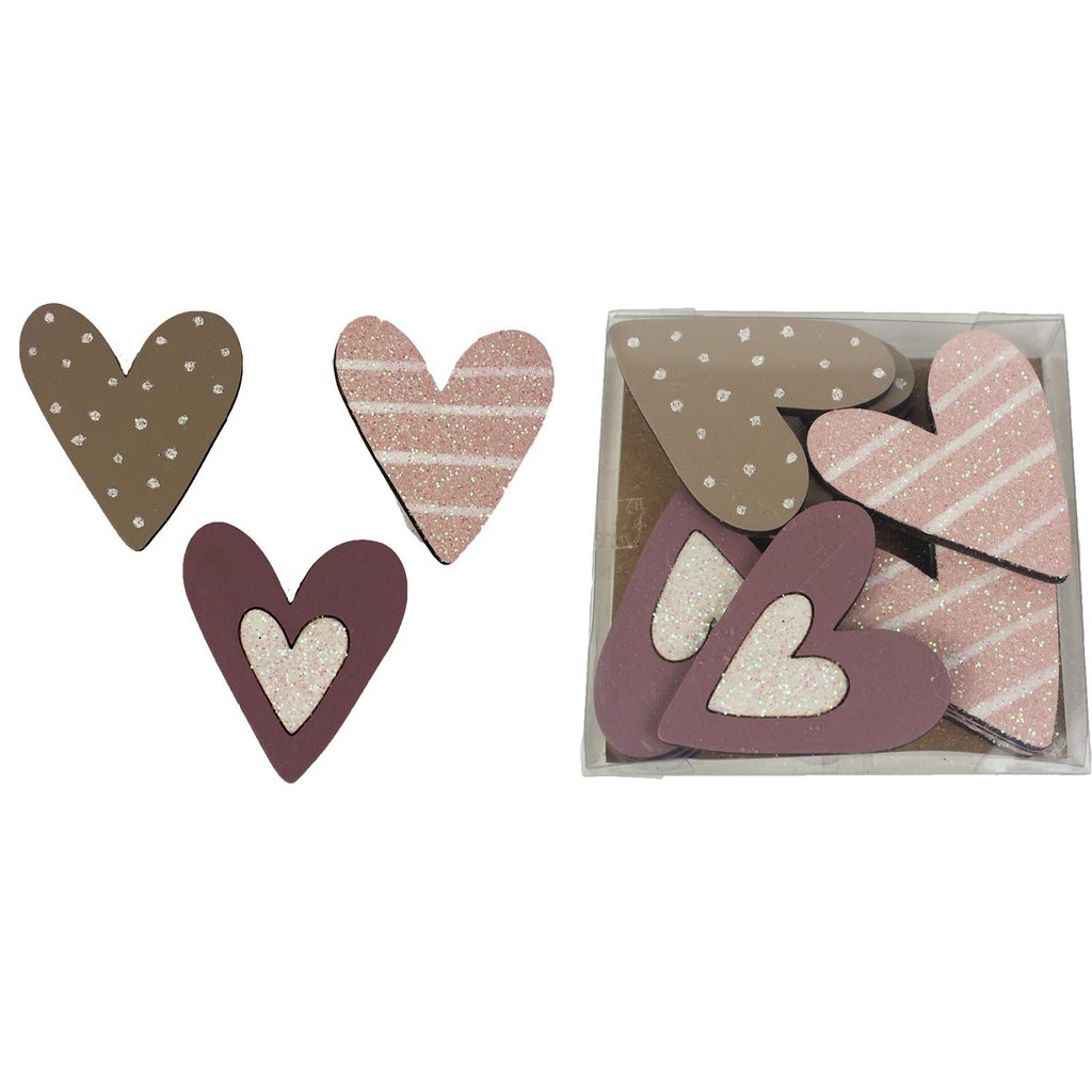 Sada dekoračních srdcí. Sada obsahuje 12 srdíček.- Rozměr: 5,3 x 6 x 0,5 cm