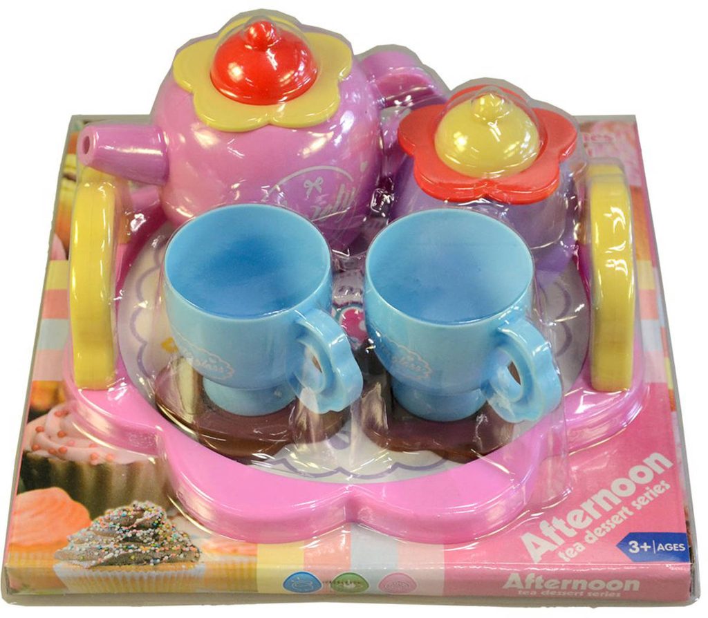 Čajový set kávová souprava barevná s podnosem dětské nádobíčko 2 barvy