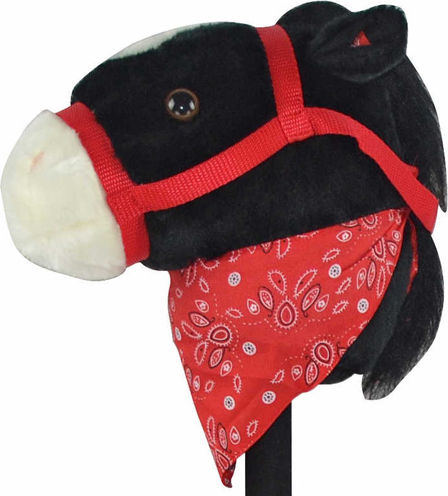 PLYŠ Kůň černý na tyči 80cm koňská hlava na baterie v sáčku Zvuk