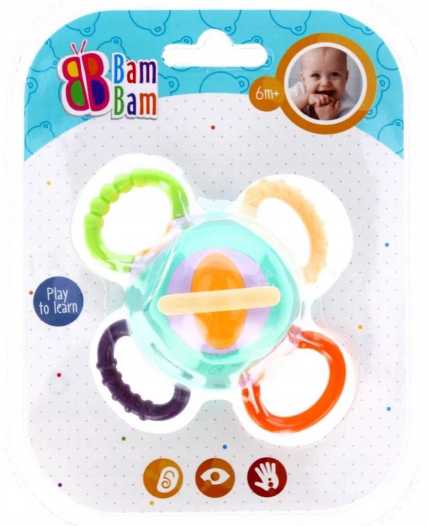 BAM BAM Baby chrastítko míček s kroužky pro miminko plast 2 barvy