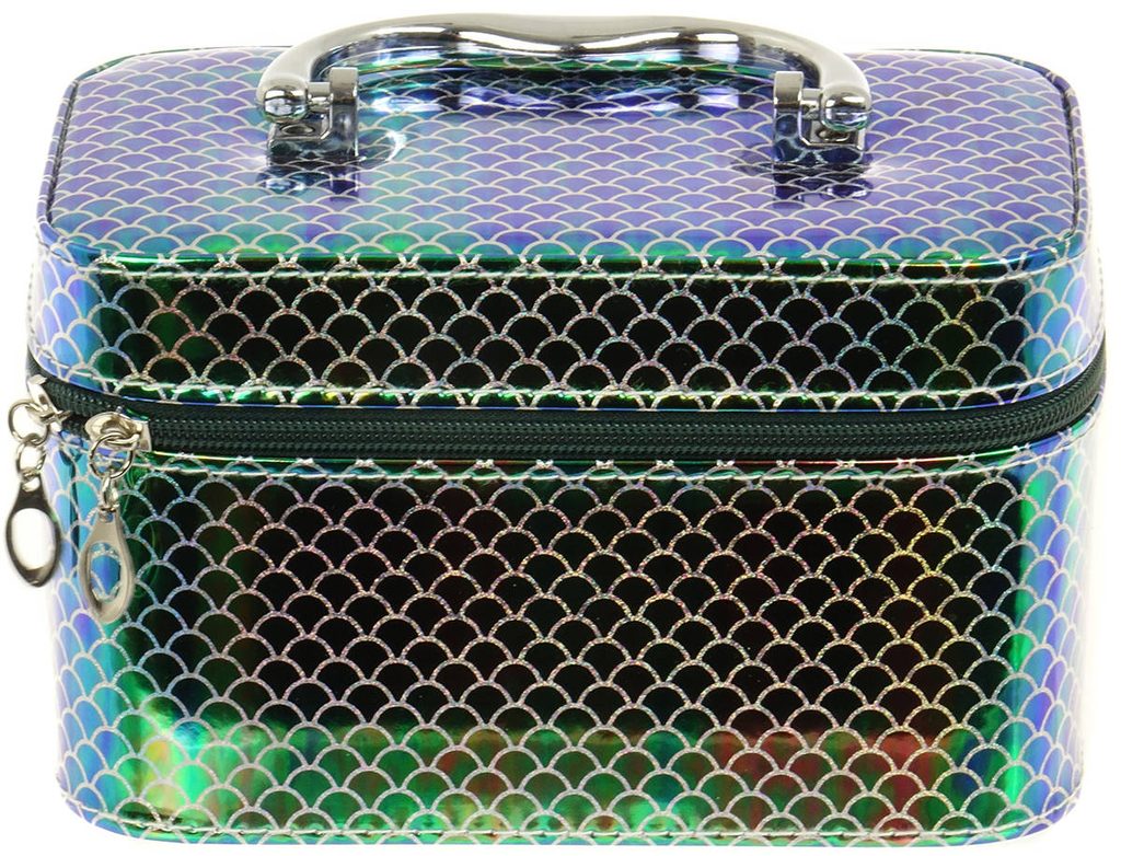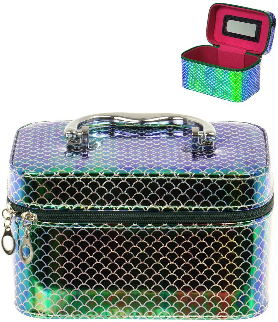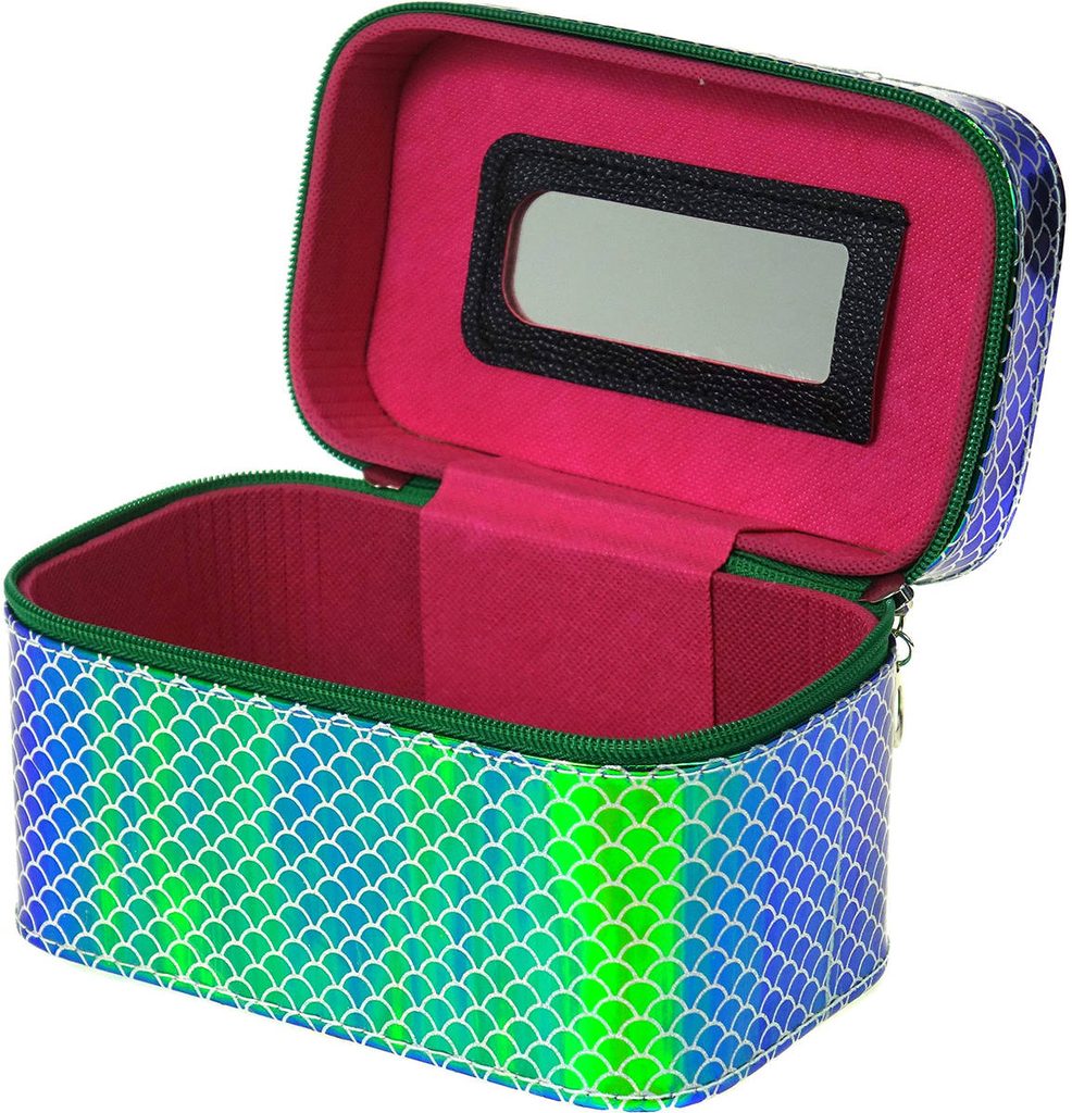 Kufřík dětský kosmetický vel. S se zrcátkem na zip zelenomodrý třpytivý