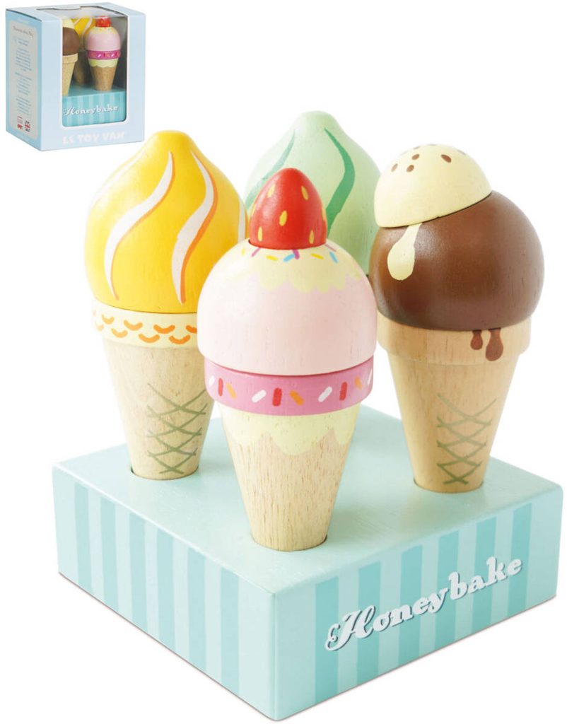 DŘEVO Zmrzlina baby barevná kopečková v kornoutu set 4ks s podstavcem
