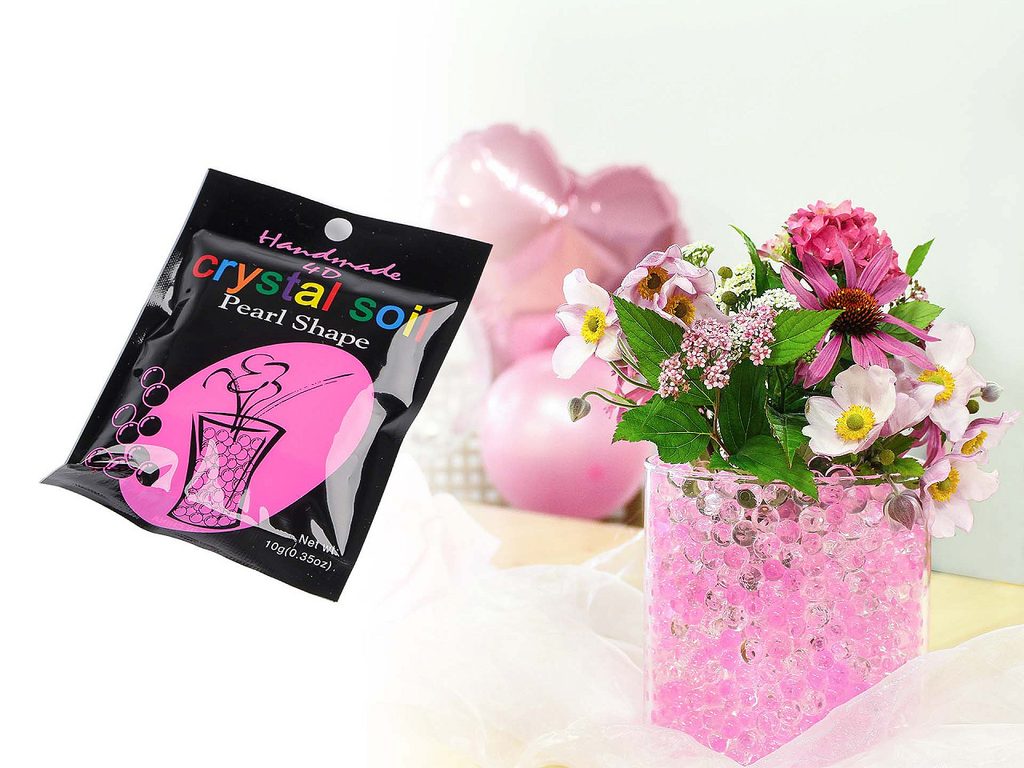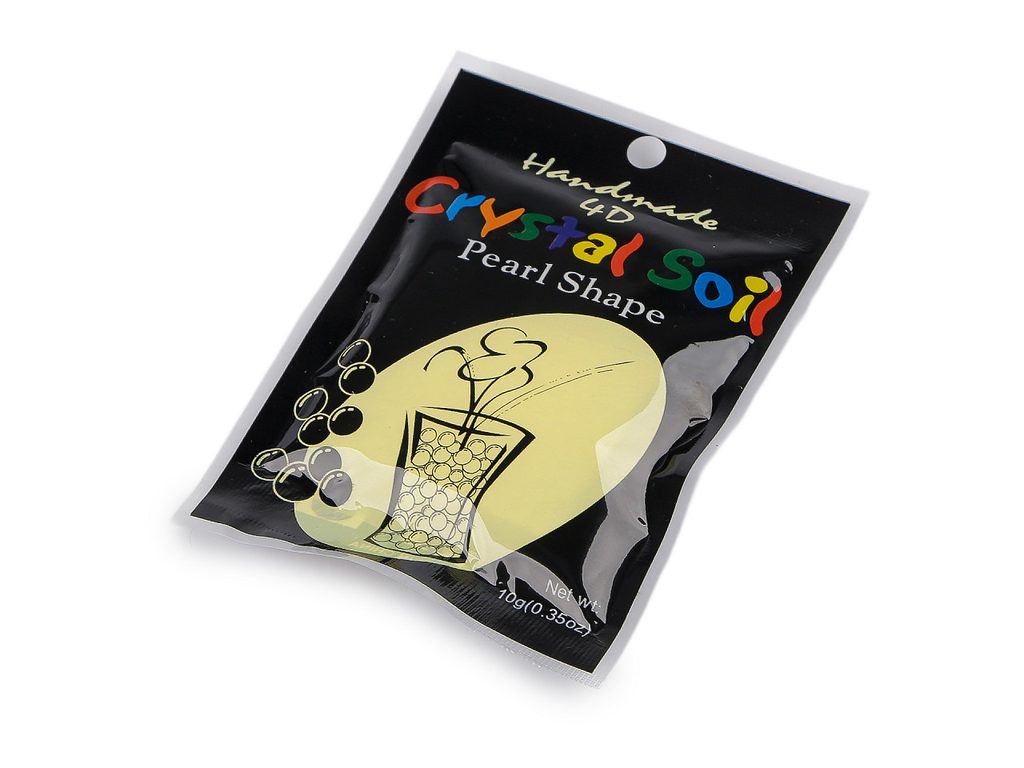 Použití: Namočte perly na 8 - 10 hodin do vody, kde nabobtnají z průměru cca 3 mm do průměru cca 14 mm. 1 g krystalků je cca na 100 ml (1 deci) vody.