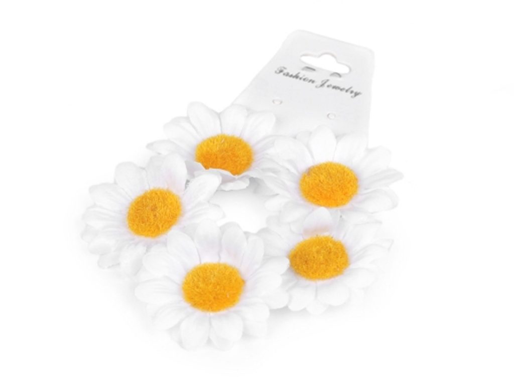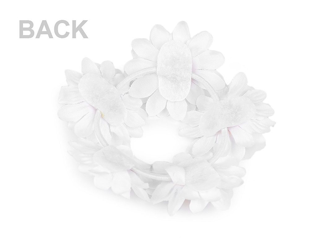 Gumička s květy kopretin poeticky ozdobí účes malým i velkým slečnám. Skvěle doplní např. účesy družiček. Květy jsou pevně připevněné, na jedné gumičce je 5 květů.