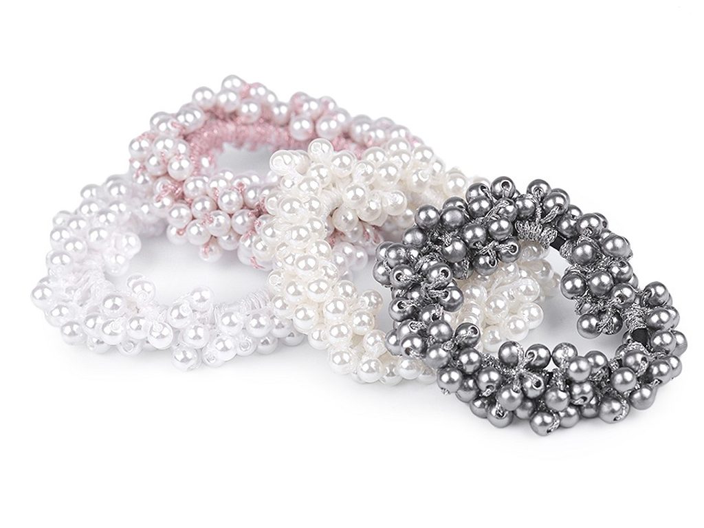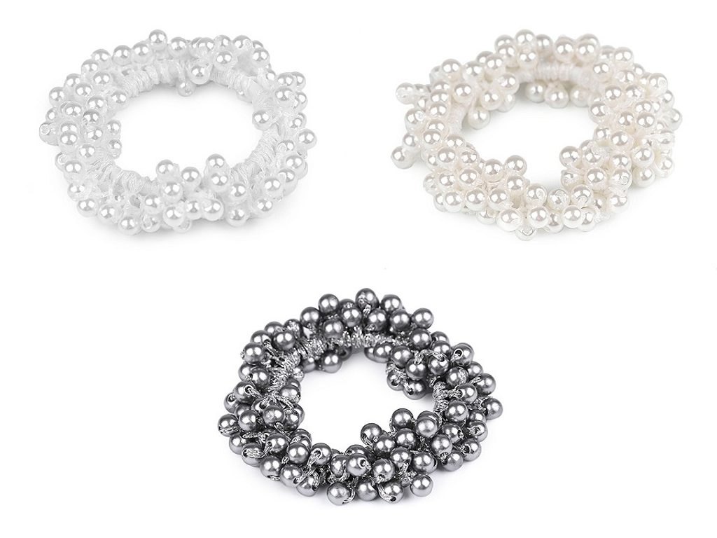Gumička s perlami a lurexem působí přepychovým dojmem. Má poutavý perlový lesk, dodá vašemu copu eleganci. Můžete ji nosit i jako náramek.