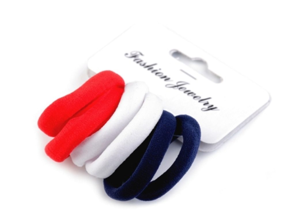 Barevný mix gumiček do vlasů, které snadno zkombinujete s dalšími vlasovými ozdobami. Jsou pevné a k vlasům šetrné. Vnitřní průměr volně položené gumičky je 3 cm, maximální délka obvodu po roztažení je 25 cm. Gumičky jsou na papírové kartě, která má otvor na zavěšení na prodejní stojan. Na jedné kartě je 6 gumiček.