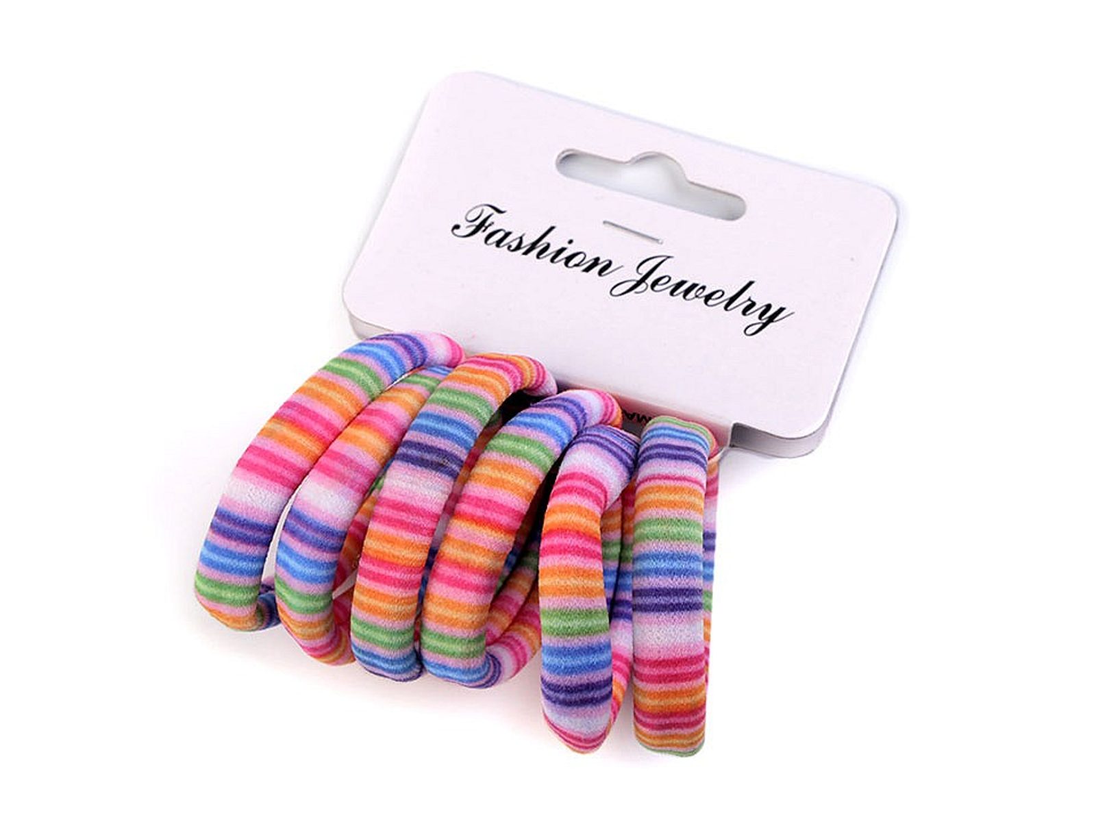 Barevné gumičky do vlasů se vzory proužků nebo chevronu.Tento typ gumiček je velice oblíbený, protože je k vlasům šetrný. Skvěle drží, hodí se pro jemné i husté vlasy.