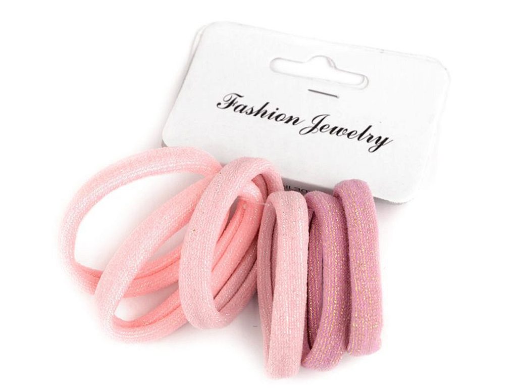 Gumičky do vlasů vypadají velice elegantně - díky všitým lurexovým vláknům se dokonale třpytí. Jsou vhodné na vytvoření jednoho či více copů. Gumičky výborně drží na hrubých i jemných vlasech. V jedné sadě je 6 gumiček.Vnitřní průměr gumičky je cca 3,5 cm a maximální délka obvodu po roztažení je cca 16 cm.