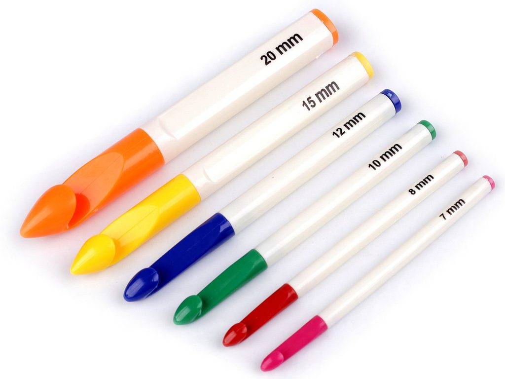 Sadu háčků na háčkování ocení každý, kdo rád háčkuje. Háčky jsou lehké, duté a vhodné na silnější příze. Sada obsahuje 6 háčků následujících velikostí: 7; 8; 10; 12; 15; 20.- Délka háčku:: 12,8 - 17,5 cm