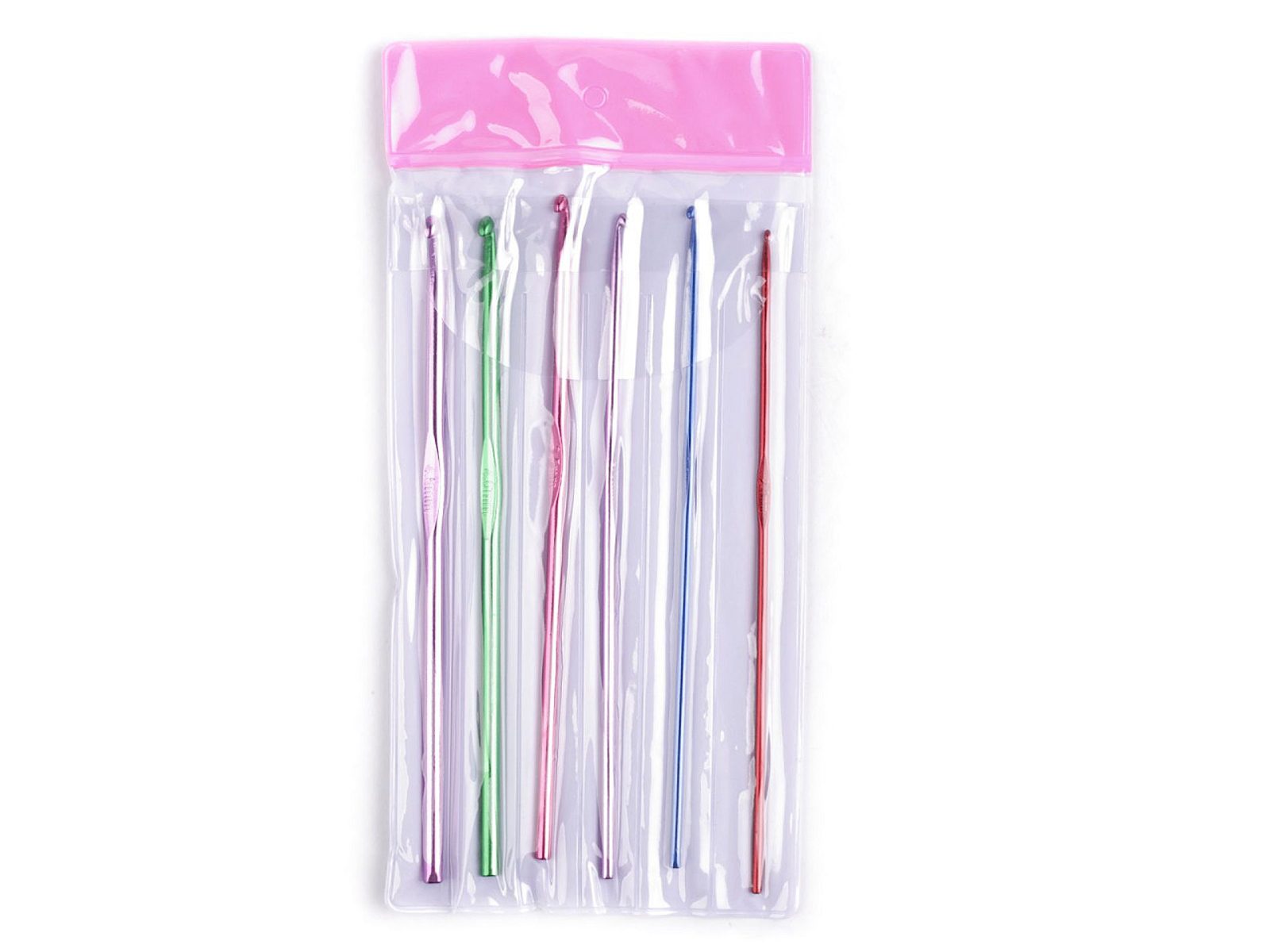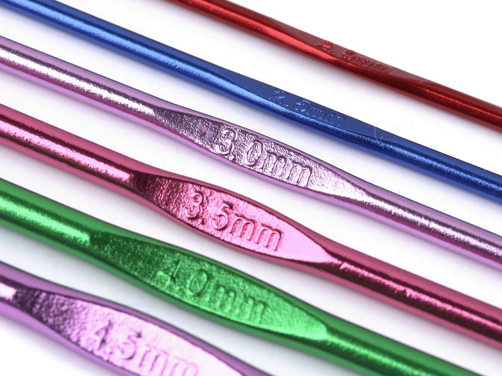 Sada 6 ks klasických hliníkových háčků následujících velikostí: 2; 2,5; 3; 3,5; 4; 4,5. Jsou zabalené v plastovém obalu, každý kus je v samostatné přihrádce.- Velikost:: 2; 2,5; 3; 3,5; 4; 4,5