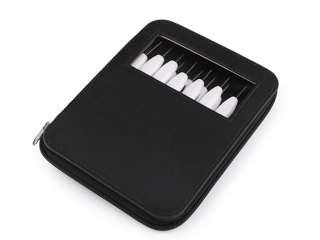Sada háčků na háčkování je zabalená v pouzdře, které můžete snadno uzavřít pomocí zipu. Háčky mají exkluzivní černý lak. Vnitřek pouzdra má sametový povrch.Sada obsahuje 16 háčků následujících velikostí: 1; 1,25; 1,5; 1,75; 2; 2,25; 2x 2,5; 2,75; 3; 3,5; 4; 4,5; 5; 5,5; 6 mm.