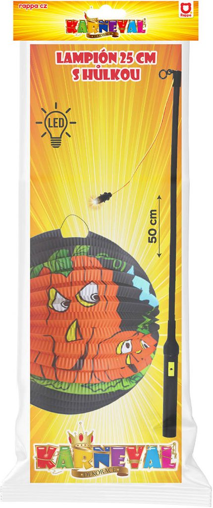 Lampion kulatý 25cm Halloween dýně na svíčku / žárovku s hůlkou na baterie Světlo