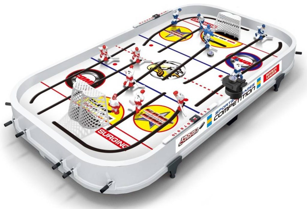 Hokej lední stolní velký hra se zajížděním za brankáře.